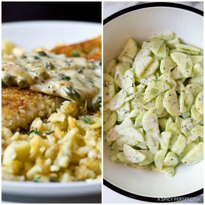 Trout Schnitzel with Spaetzle and Mustard Caper Cream Sauce