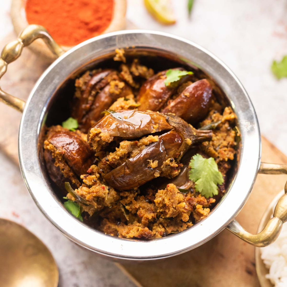 | Spice up your meal with these air fryer stuffed baingans. Inspired by the Tamil Nadu dish Ennai Kathirikai, they're perfect served with hot white rice. The air fryer version is a convenient, hands-free alternative to stovetop cooking, requiring less oil and cooking quickly- a bonus! |