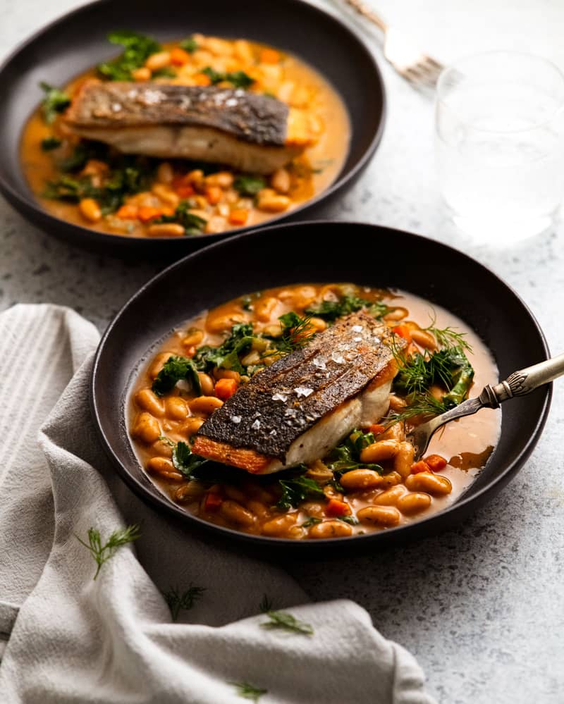 There's over 150 recipes in my cookbook - what to try this week? Try this fish recipe! I describe it as the most unassuming recipe in my cookbook....and yet it is the recipe I have made most often in "real life". π It's just a really great, quick way to turn a piece of fish into a complete meal in a bowl. The bean ragu (fancy word for quick stewed beans) does triple duty as a starch, vegetables, and a sauce for the ο¬sh!