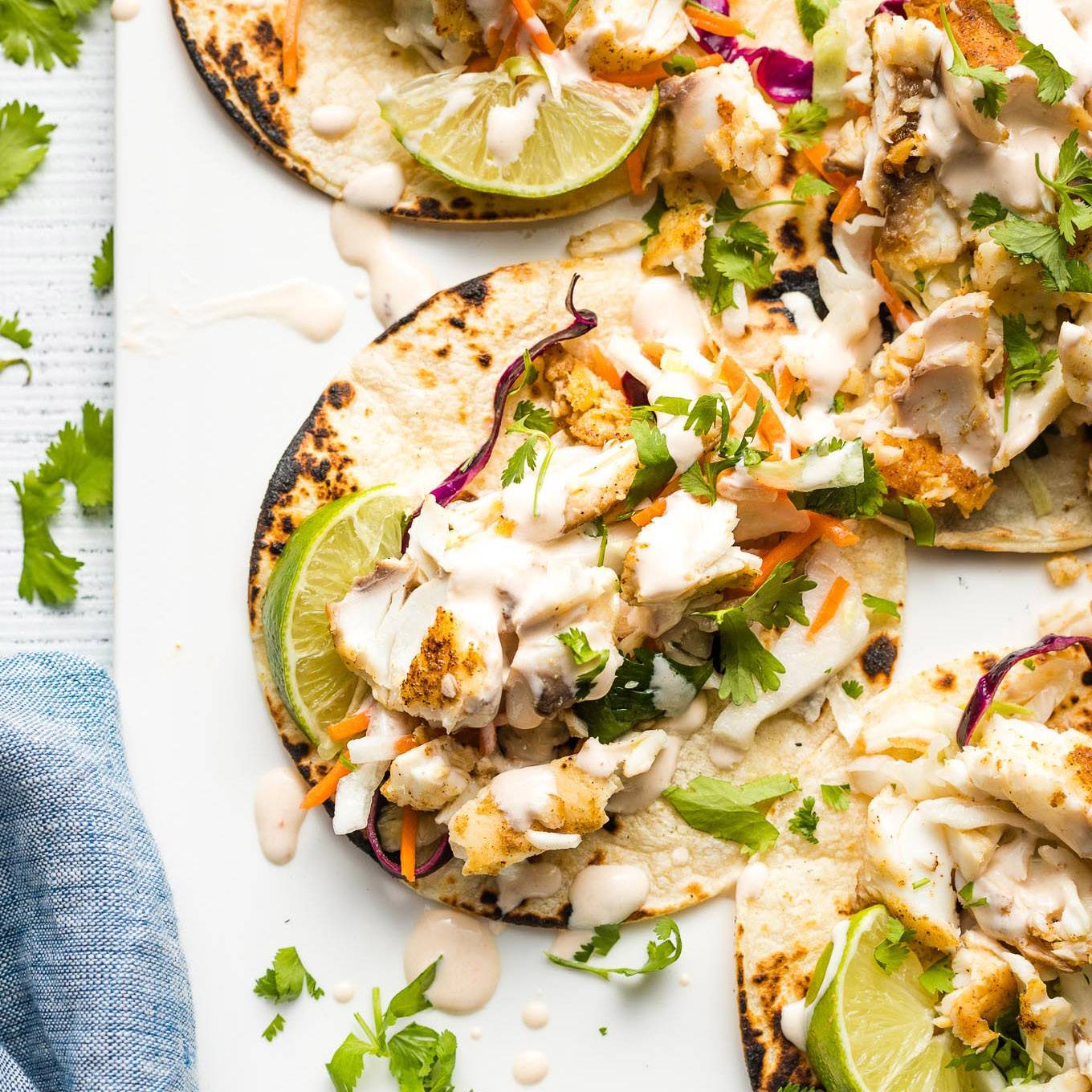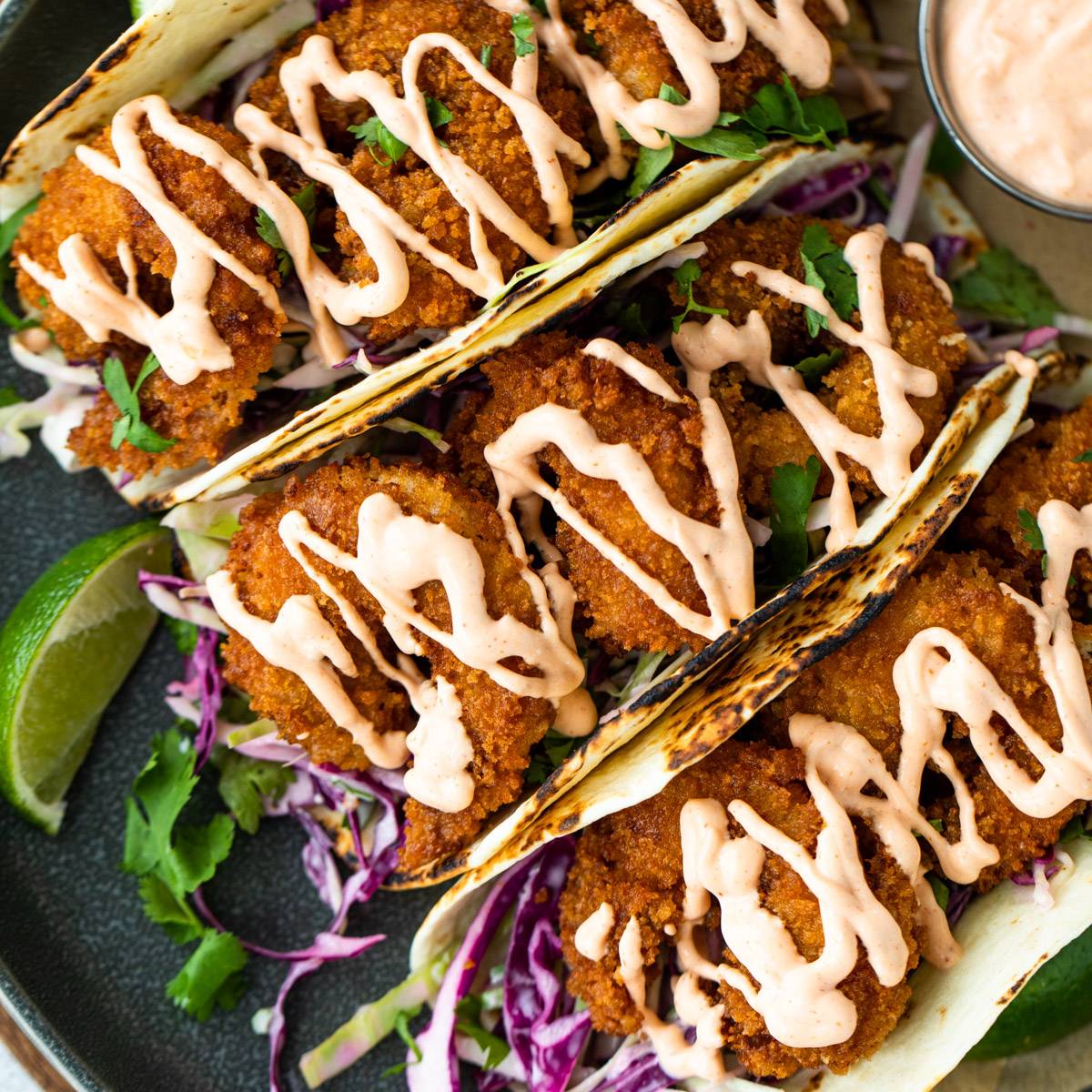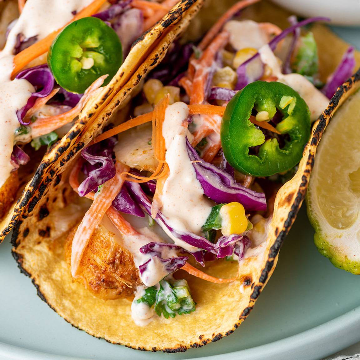 | Spicy Shrimp Tacos with Creamy Sriracha Sauce |