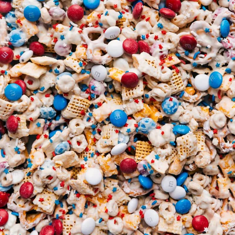 13. 4th Of July Snack Mix: Celebrate America with this tasty and festive 4th of July Snack Mix complete with white chocolate-coated cereal, pretzels, and candy! This easy snack mix will be the first thing to go at your summer parties!