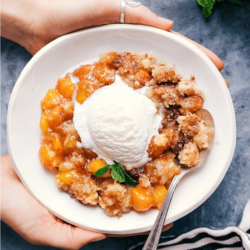 10. Peach Cobbler: The ultimate peach cobbler with juicy sweet peaches and a crispy cinnamon cookie topping. Easy to make and delicious!
