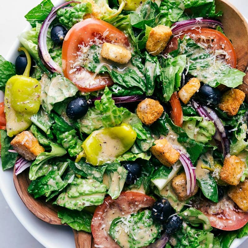 7. Olive Garden Salad: One reader said, "I always just get salad and breadsticks at Olive Garden. NOW I don't have to go there anymore! This SALAD looks yummy and tastes even better than the version that inspired it. WAY less salty. Love it!"