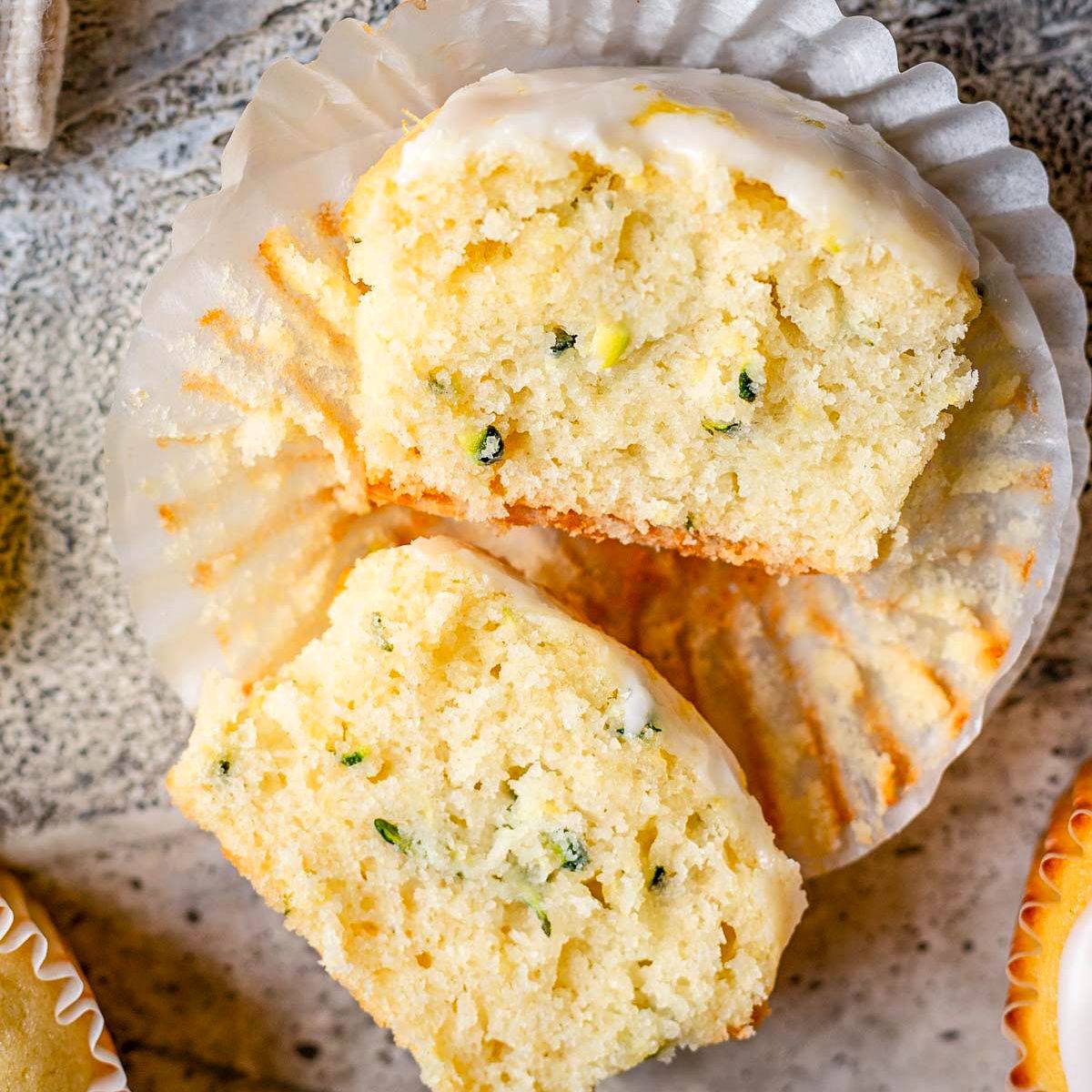 These delicious Lemon Zucchini Muffins are light, fluffy and incredibly moist thanks to the zucchini. Topped with a simple lemon glaze, this quick and easy zucchini muffin recipe is a great option for breakfast, afternoon snack, or dessert!