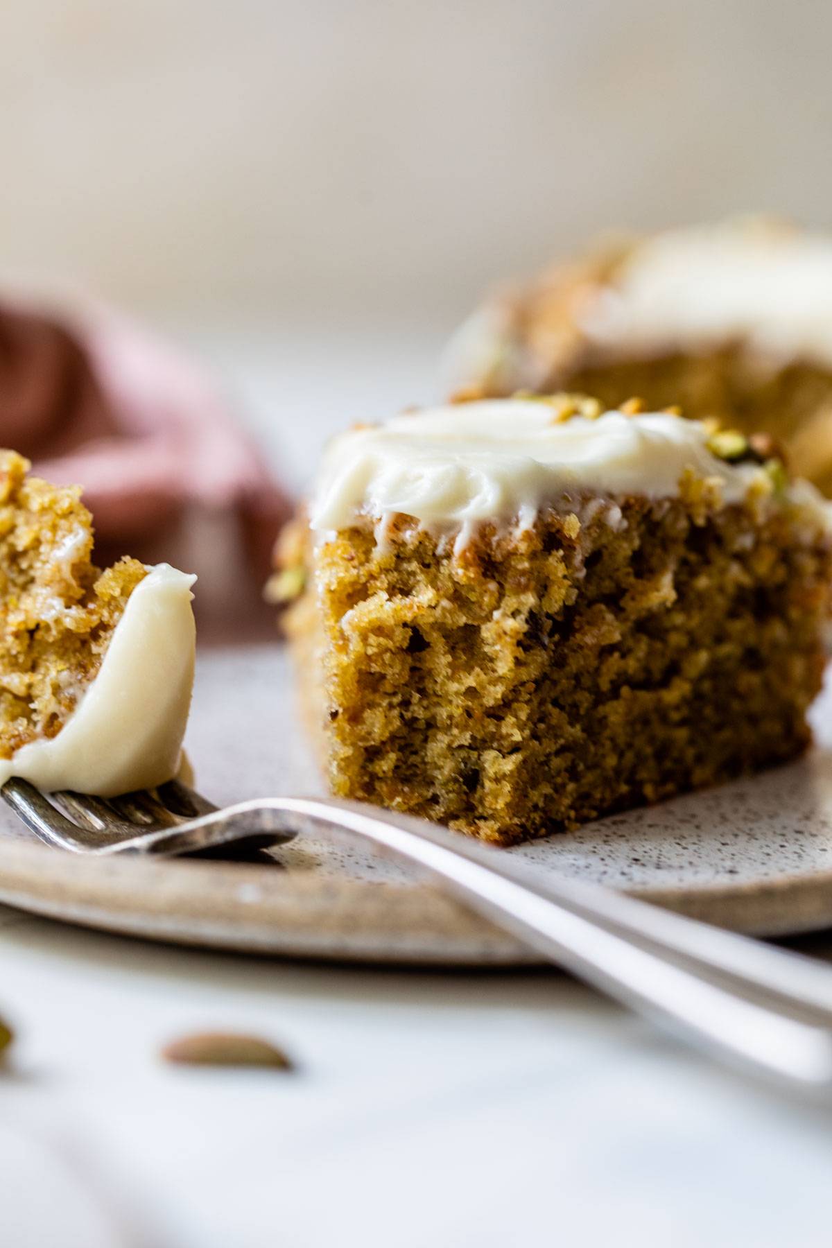 This Pistachio Cake is nothing short of perfection! Made with real pistachios and without food coloring, then topped with a mascarpone frosting and extra pistachios, it's an easy one-layer cake that you'll want to make for every special occasion! This is seriously my new favorite cake recipe and I am obsessed with that frosting!