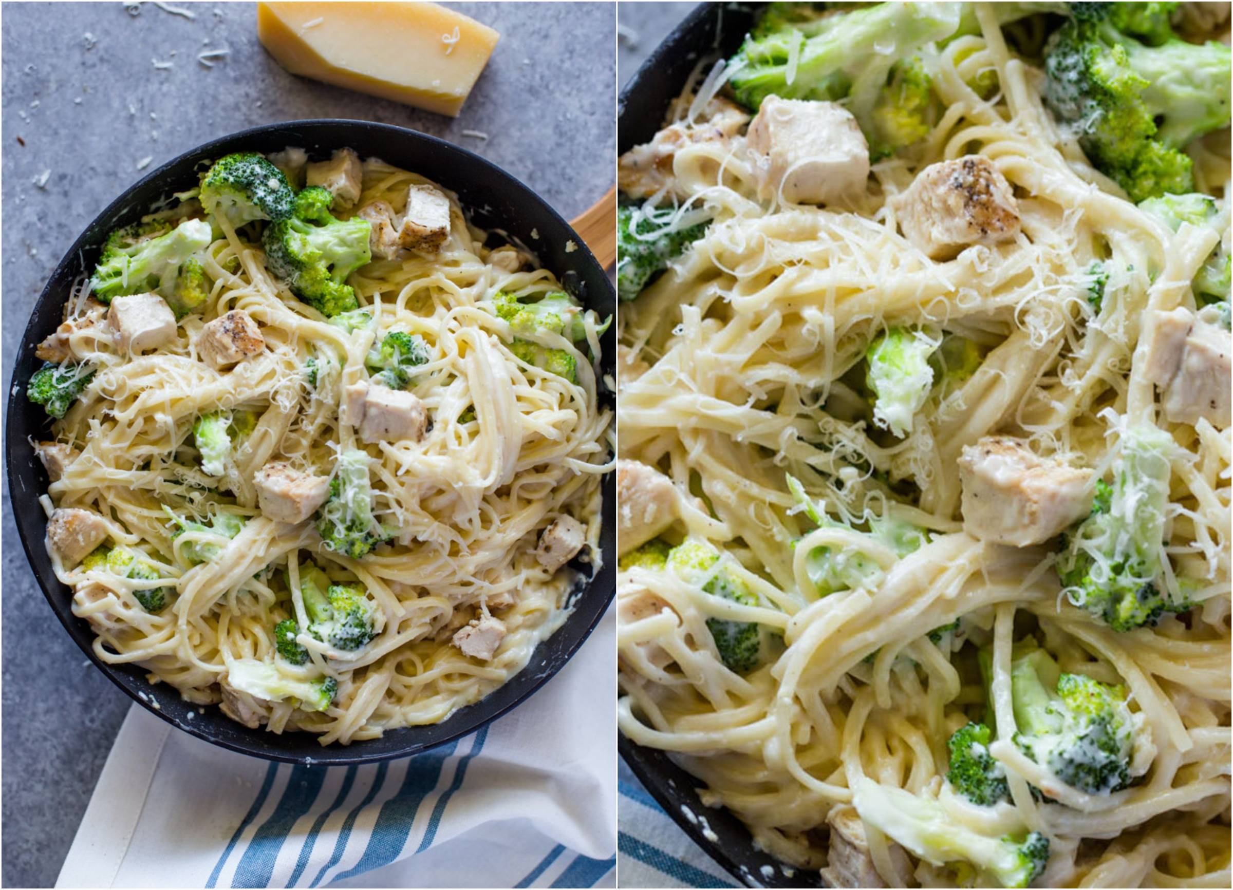 Chicken and broccoli coated in a light skinny garlic Alfredo sauce. This guilt-free version of chicken Alfredo is creamy, flavorful, and even tastier than the original. Plus, it all comes together in under 30 minutes!