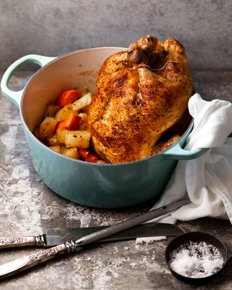 Suggestion for something to make from Dinner this weekend - This one will knock your socks off! So juicy you'd swear it's been brined for days - but it hasn't. The trick? Semi-pot roasting. So easy. So good!