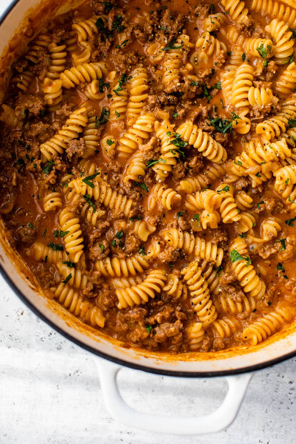 I wanted to share this Hamburger Helper recipe with you! It's got that delicious meaty and cheesy flavor to it just like regular hamburger helper but is made healthier and also just so happens to be vegan! It's such an easy weeknight comfort food recipe and I love it so much! I know you will as well!