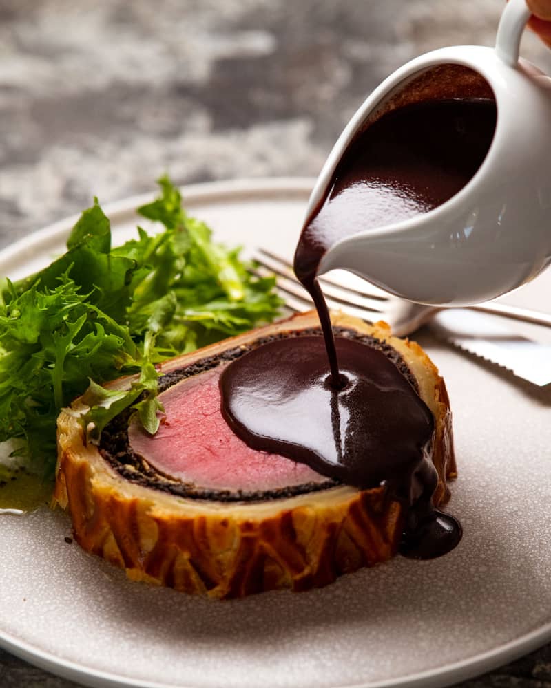 Something different to try from Dinner - Red Wine Sauce! It's pictured below with the epic Beef Wellington (p252). But there's no need to go to that effort - serve it over a simple steak to make it fine dining worthy!