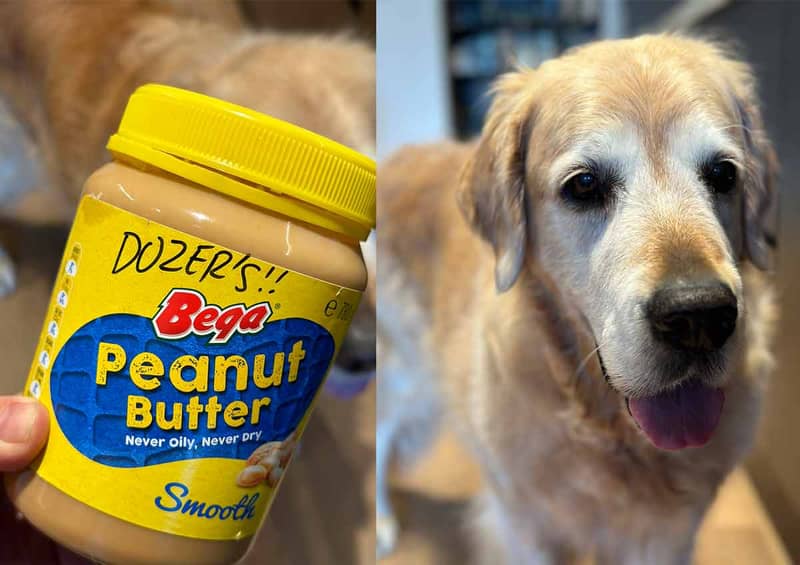 I once saw someone using Dozer's peanut butter for their toast. (Dozer double dips). So I decided I better label his jar. π