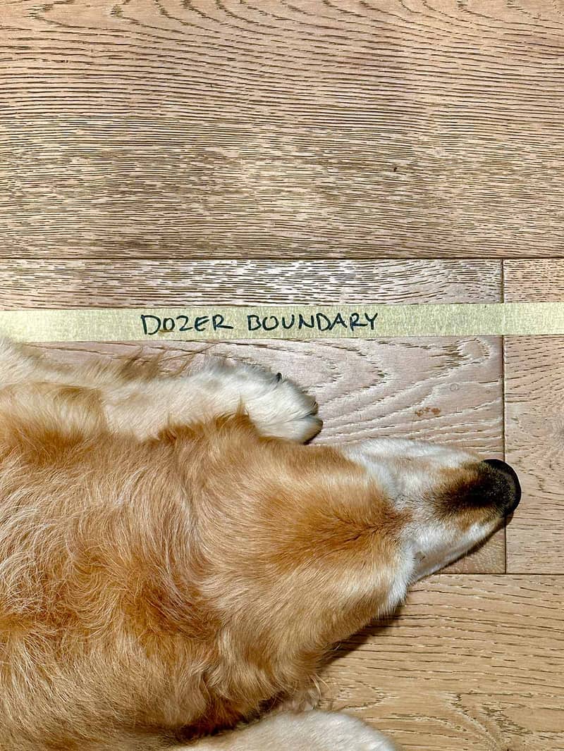 If you're thinking "awww, what a good boy, he's respecting the kitchen boundary!" - he's on the wrong side of the line. 🤯