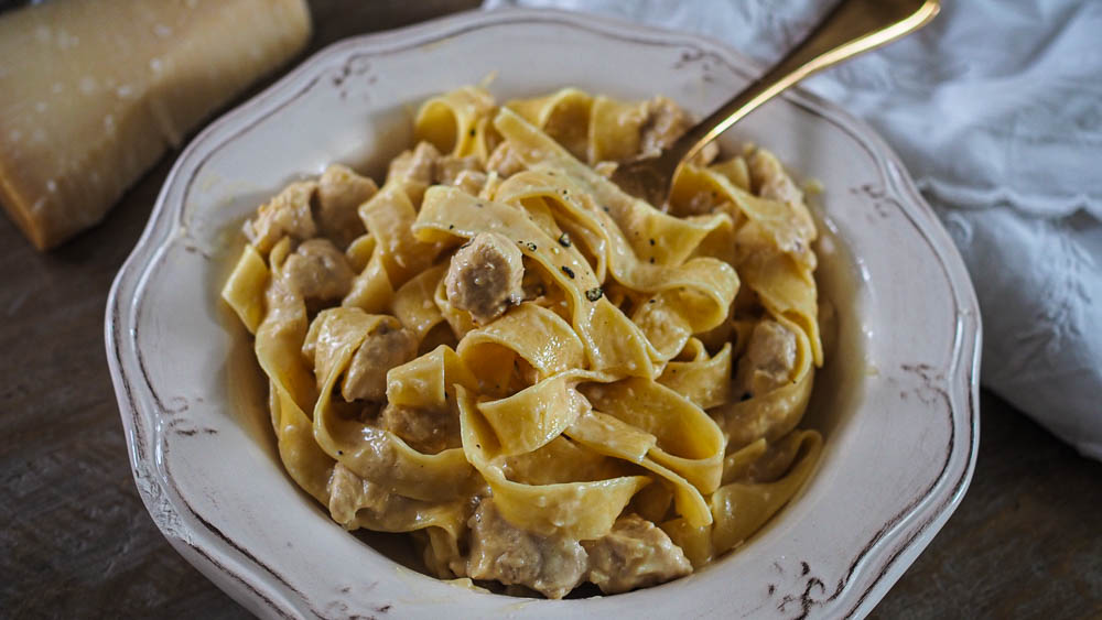| Pasta Alfredo is one of those creamy, delicious, indulgent pasta dishes that is rich in cream and cheese. But it is very possible to whip up a delicious alfredo pasta without using lots of cream. This healthier version has a gorgeous creamy, velvety texture but without using any cream and is a lower fat version of the classic dish without sacrificing taste or mouthfeel! |
