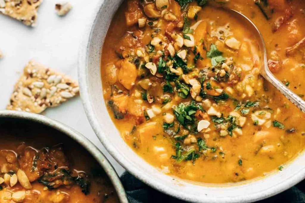 #1: Spicy Peanut Soup with Sweet Potato + Kale