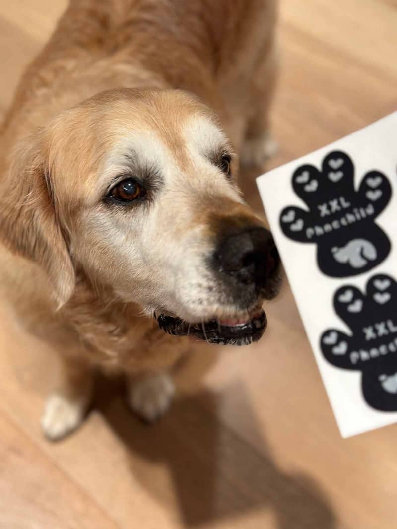 New year, new paw pads!! Dozer's been having trouble on the wooden floors lately. Combination of age, dry pads and slippery wood. Trying something the vet recommended - paw pads! Shows promise. Will keep you informed on progress!