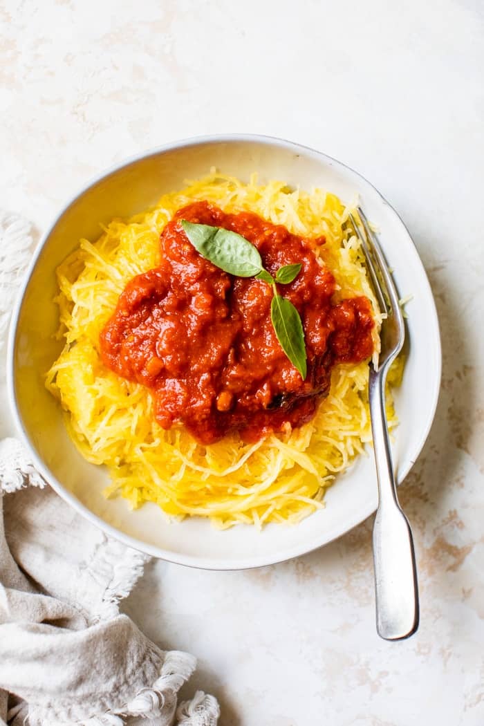 Learn how to make Instant Pot spaghetti squash with this step-by-step tutorial. It's faster than making it in the oven, and the Instant Pot does all the work for you! Super easy dinner to make and ready in no time!