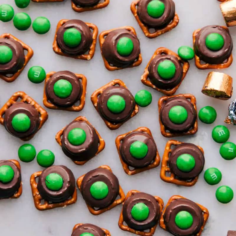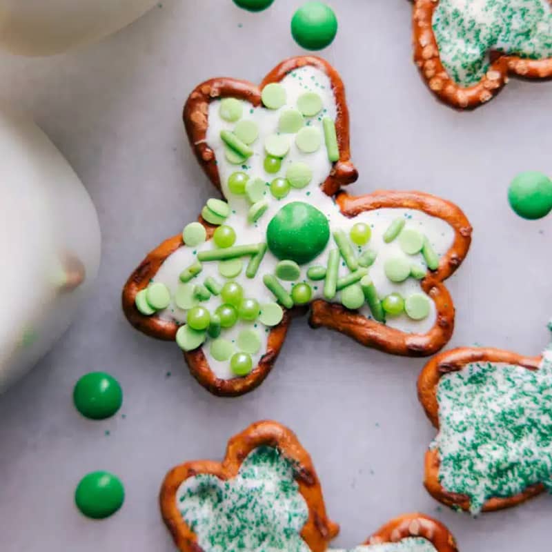 6. Pretzel Shamrocks: Transform a few simple ingredients into some downright delicious Pretzel Shamrocks — perfect for St. Patrick's Day! These shamrocks double as both a sweet treat and cute table decor. Whether you're looking for a fun activity to do with the kids or a last-minute party snack, Pretzel Shamrocks are the perfect thing to make!