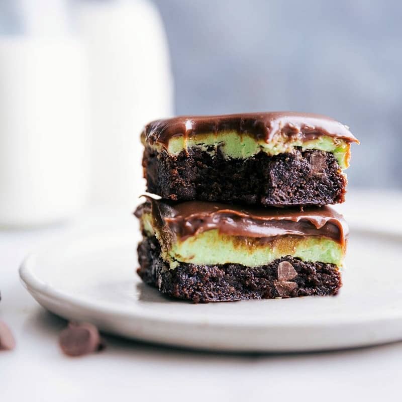 7. Mint Brownies: Easy-to-make Mint Brownies have a thick layer of mint frosting and a soft chocolate ganache topping.