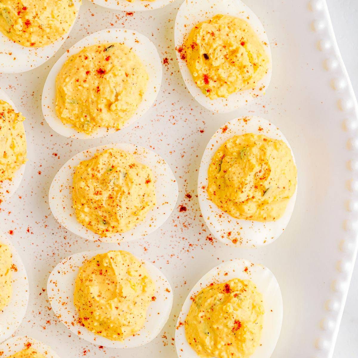 This classic Deviled Eggs recipe is easy to make, incredibly delicious and is a total crowd pleaser! A creamy, tangy filling is the key to the best deviled eggs and this recipe certainly delivers! One of our all time favorite party appetizer recipes!
