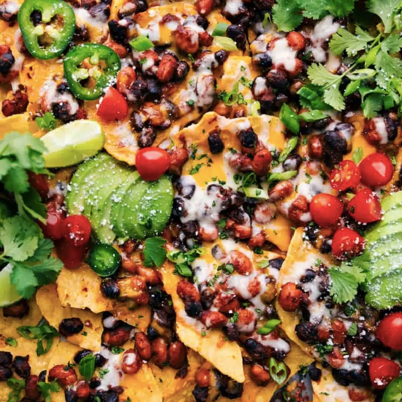 24. The Best Vegetarian Nachos: The absolute best Vegetarian Nachos I've ever had are sure to be a hit with everyone at the table, from dedicated carnivores to veggie lovers! Perfect for any occasion, this easy-to-make recipe is loaded with flavorful seasoned beans, melty cheese, and fresh nacho toppings!