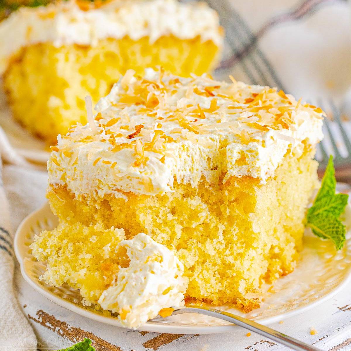 This Pina Colada Cake is loaded with all the amazing flavors you'll find in a Pina Colada cocktail! Delicious and easy, this pineapple coconut cake recipe starts with a box mix but tastes like it's from a bakery – so good!