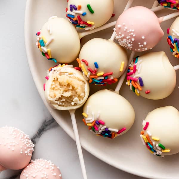 The difference between these cake pops and others you may have tried is that these are 100% homemade. There's no box cake mix or canned frosting, which results in a totally unique cake pop experience. You can actually TASTE the homemade. π€