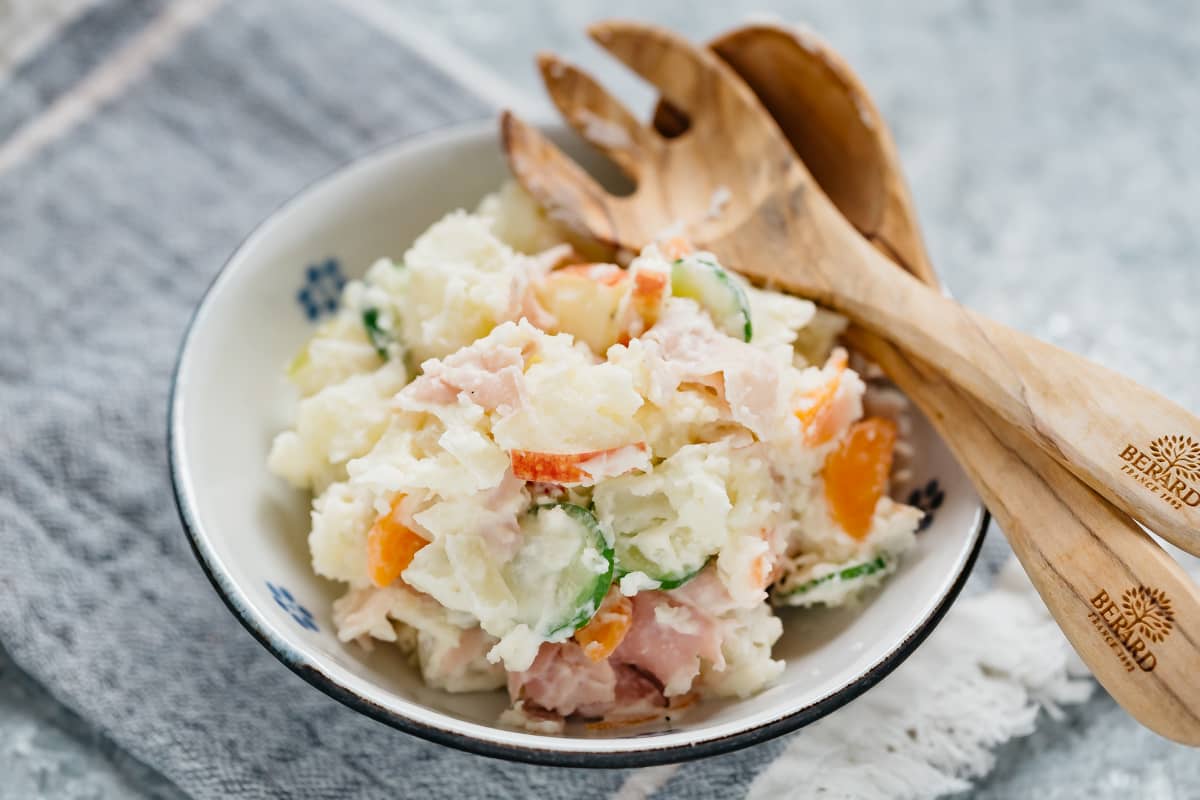 Japanese potato salad is a popular and typical side dish in Japan. Known for its creamy texture, slightly sweet flavor, and crunchy vegetables mixed in, this recipe offers a refreshing take on the traditional western version. It's very easy to make and is perfect for bento boxes!