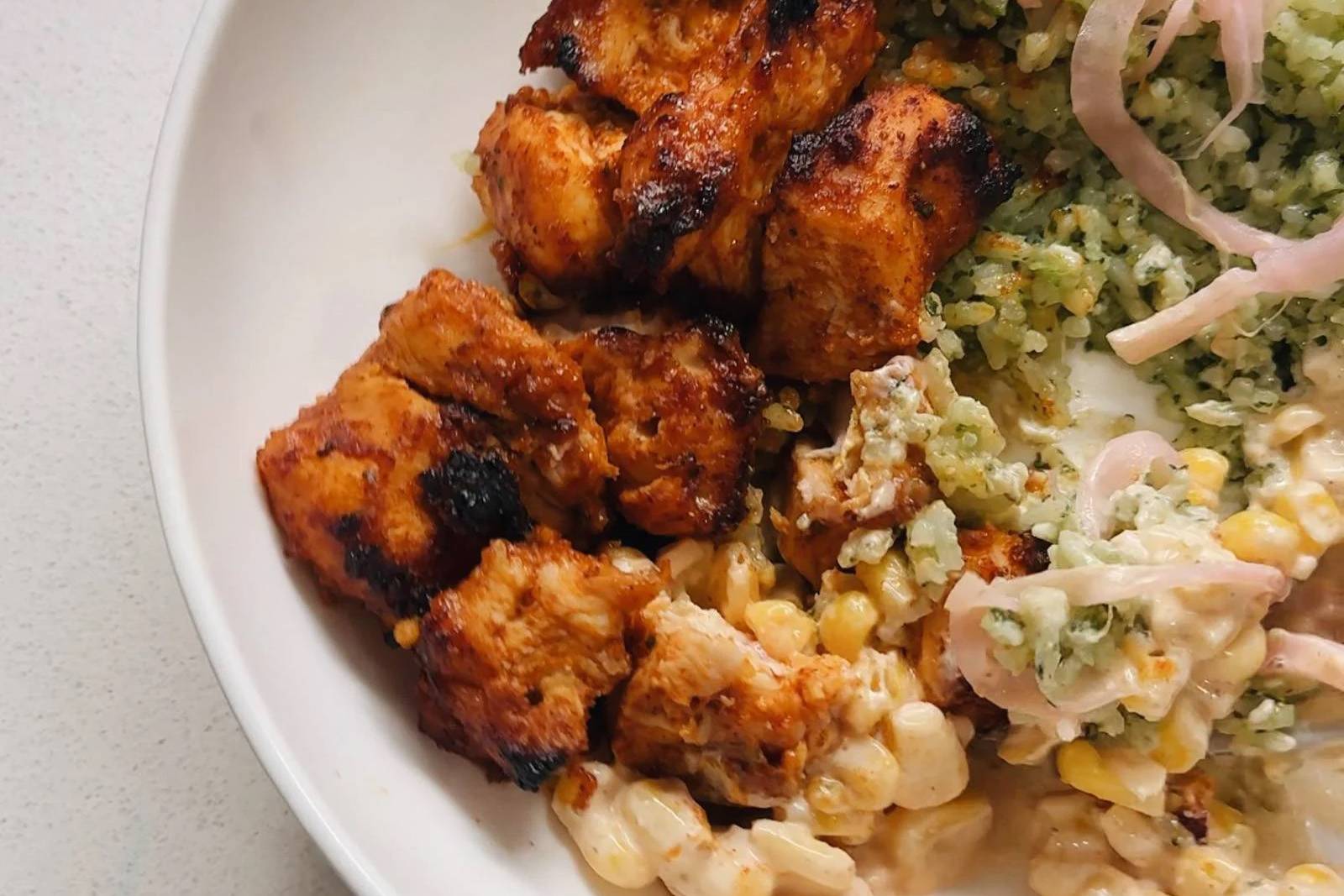 These chicken skewers also play well with black beans and avocado corn salsa, or thrown on a pre-made southwestern-style salad, or tucked into a tortilla for a taco moment!