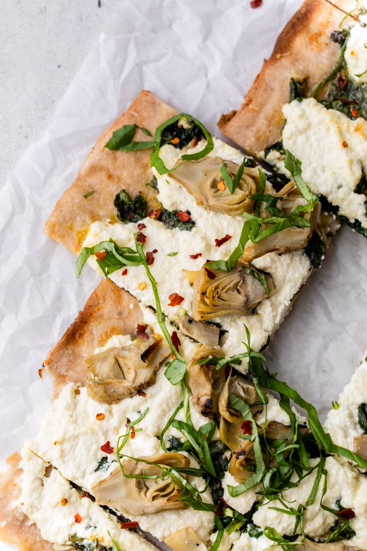 | What's an email-only recipe, you ask? It's an exclusive recipe that I'm only sharing with those who are on my email list, aka YOU! This recipe won't be on the blog, and instead will live here in this email. I'll be sending out email-only recipes at the beginning of every month. I wanted to share this Spinach Artichoke Flatbread recipe with you. When I say this is so incredibly delicious, I mean that in all caps!! I might need to find a way to create this officially for the blog. It's so tasty and easy to make. You're going to LOVE it! Full recipe below, and step-by-step photos below that. Enjoy! Spinach Artichoke Flatbread Ingredients: 6 cloves garlic, finely chopped 1 tbsp dried oregano 1/2 tsp red pepper flakes 1/2 tsp salt 5 oz. baby spinach 16 oz. store-bought pizza dough, room temperature 1 cup marinated artichoke hearts 1 cup ricotta 1/2 cup parmesan, grated Fresh basil leaves, for serving Directions: