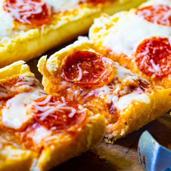 | Garlic Bread Pizza is my new favorite recipe and it's so easy! I never new pizza could be so flavorful. All you need is a package of frozen garlic bread, some pizza sauce, pepperoni (if you like them), and shredded mozzarella or Italian blend cheese. Get the Garlic Bread Pizza Recipe. Watch the short How-To Video on YOUTUBE READER COMMENTS "Needed something easy and quick for supper. It turned out to be very good. Teenager approved. Will definitely make it again." "I made this and it was soooooo good i sautรฉed mushroom's, onions and garlic and added that to the top YUM!!!!" "This pizza is sooooooo amazing! Only problem is I ate way too much." More Fun Pizza Recipes |