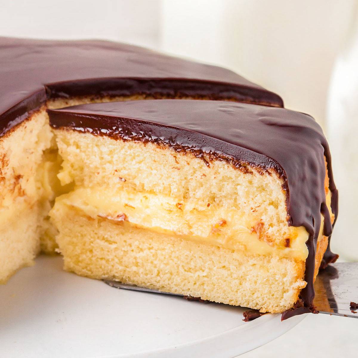 Boston Cream Pie is an all-American classic that boasts two layers of moist vanilla sponge cake with a silky smooth pastry cream filling sandwiched in between, and it's all topped with a decadent chocolate ganache.