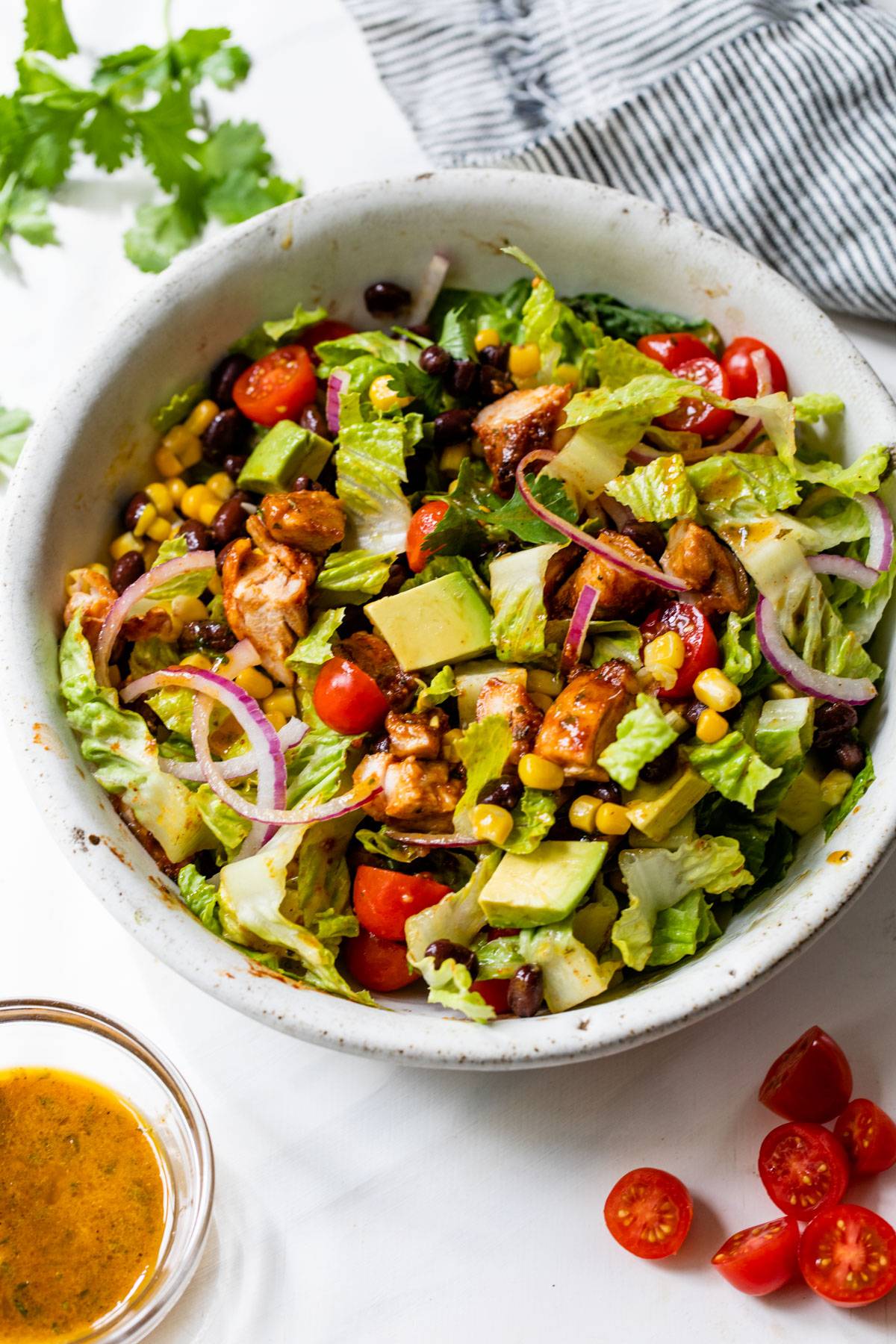 | Just popping in to share my latest recipes with you all, along with a few healthy favorites. I'm sharing my latest recipes with you all below -- I hope you have a lovely weekend! This BBQ Chicken Salad tosses baked BBQ chicken thighs, black beans, corn, avocado, tomatoes, and lettuce in a zesty cilantro lime vinaigrette. Enjoy it for healthy weeknight dinners or as a Southwestern-inspired side dish! Hot Honey Chicken Wings are the best of both worlds: a bit of spice and a hint of sweetness. They're baked in the oven until crispy, then coated in a delicious hot honey sauce that you'll want to eat by the spoonful! Sweet Potato Black Bean Burgers Cooked sweet potatoes, black beans, brown rice, and smoky spices are combined and transformed into these hearty Sweet Potato Black Bean Burgers! It's a vegan and gluten free veggie burger recipe you'll quickly fall for. These Garlic Broccoli Steaks are a fun way to eat and serve broccoli. They're made with minimal ingredients and go from good to great thanks to the garlic aioli. This simple Beef Lo Mein recipe is made with flank steak, cooked vegetables and a simple soy sauce-based marinade. It's an easy, flavorful weeknight meal that's ready in about 20 minutes and tastes similar to your favorite Chinese takeout. If you make any of these recipes, be sure to leave a comment and star rating on the blog and let me know what you think – I love hearing from you! -Erin |