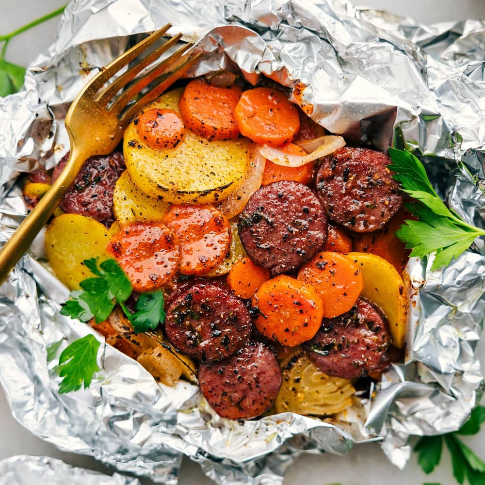 | Hey there reader! If you're anything like me, most nights I'm looking for something easy, family-friendly, and As Little Clean-Up As Possible The solution? Hobo Foil Packets! We're using sausage instead of ground beef. It's a truly comforting, filling, and hearty meal that's great for a no-mess meal or campfire dinner!