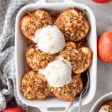 More from Love & Lemons... Apple Pie Recipe In this easy apple pie recipe, tender, cinnamon-spiced apples fill a flaky, buttery crust. Top it with vanilla ice cream for a mouthwatering fall dessert! Apple Crumble This apple crumble recipe is easier than pie, but it's just as delicious. An oat-y, nutty topping covers a thick layer of warmly spiced fall apples. Baked Apples These baked apples are a simple, delicious fall dessert. The soft, juicy apples contrast beautifully with a crisp brown sugar and cinnamon topping. |
