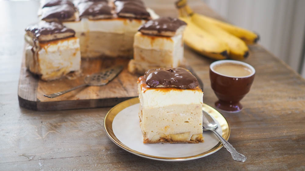 | This bannoffee slice recipe is pure Bannoffee heaven! A layer of buttery puff pastry is smothered in salted caramel sauce, sliced bananas and a creamy, light banana custard. Then to top it all off is whipped cream, more salted caramel sauce and chocolate dipped pastry. This dessert slice is based on the krempita vanilla slice and is so moreishly delicious that it should come with a warning label! This is a pushy recipe Dear Reader (and there's a Thermomix recipe too). |