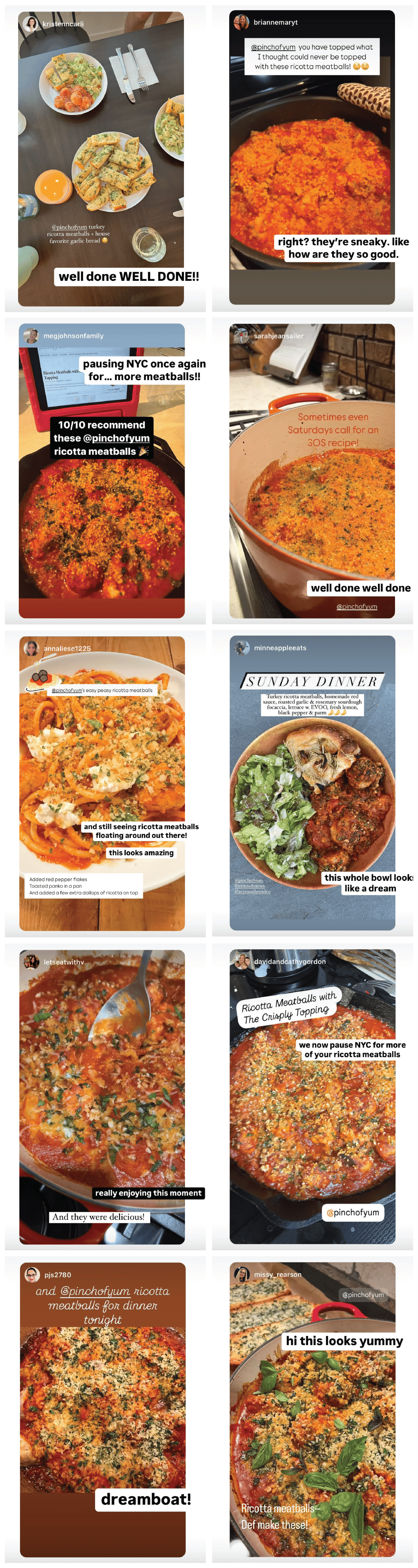 I'm so happy to report that it's not just me - we all love this recipe! I've gotten texts, DMs, pictures, and had multiple conversations with people out in the real world about these Ricotta Meatballs ! They just won't quit. I don't think I've ever seen so many pictures of one recipe on Instagram ever. The house favorite garlic bread deserves a mention, too, for being the absolute perfect dunker! If you haven't made this one yet… consider this your sign!