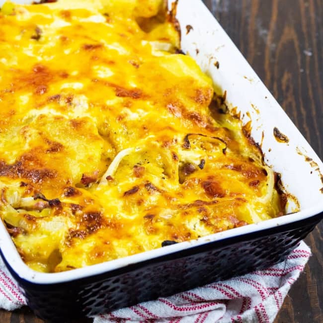 This foolproof Scalloped Potatoes with Ham is wonderfully creamy and cheesy. Perfect for a holiday side or a great way to use up leftover ham.