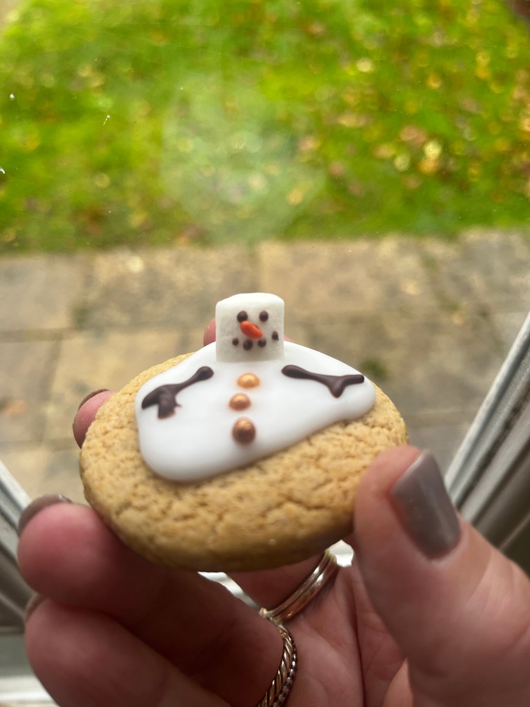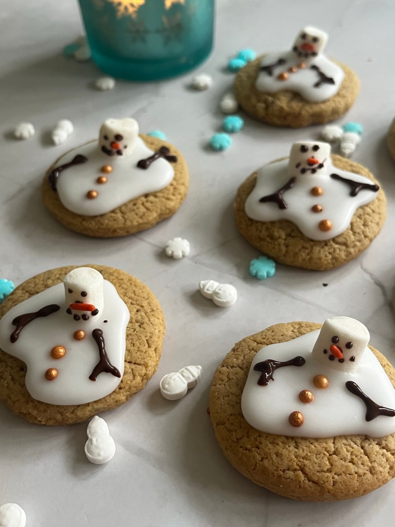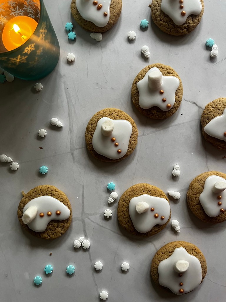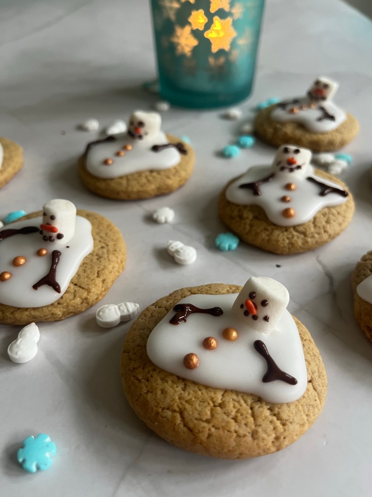 I was grabbing a coffee in the Pret nearest my office the other day and spied the Melvin the melting snowman gingerbread cookies on the counter and thought, you know what, we need a friendly version of these! And why not make the friendly version, small and cute at the same time?