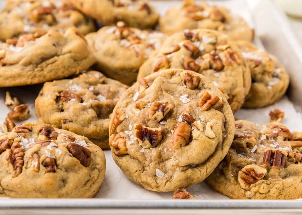 | Hello ooseims, These warm Pecan Cookies are a comforting hug in cookie form! Tender, buttery cookies are laced with golden pecans and rich, buttery flavor for the ultimate decadent dessert. The whole family will be drooling over these chewy cookies, so whip up a batch today! Do you have a favorite ice cream flavor? The one you look for and order everywhere you go? For a lot of people, it's Butter Pecan. There's just something so good about the sweet butterscotch paired with the salty, crunchy pecans. Well, these favorite cookies have that exact same flavor profile. I think they might be even better because they are soft and chewy, and so good fresh out of the oven! So, you can enjoy Butter Pecan ice cream in the summer and then eat these butter pecan cookies all year round!