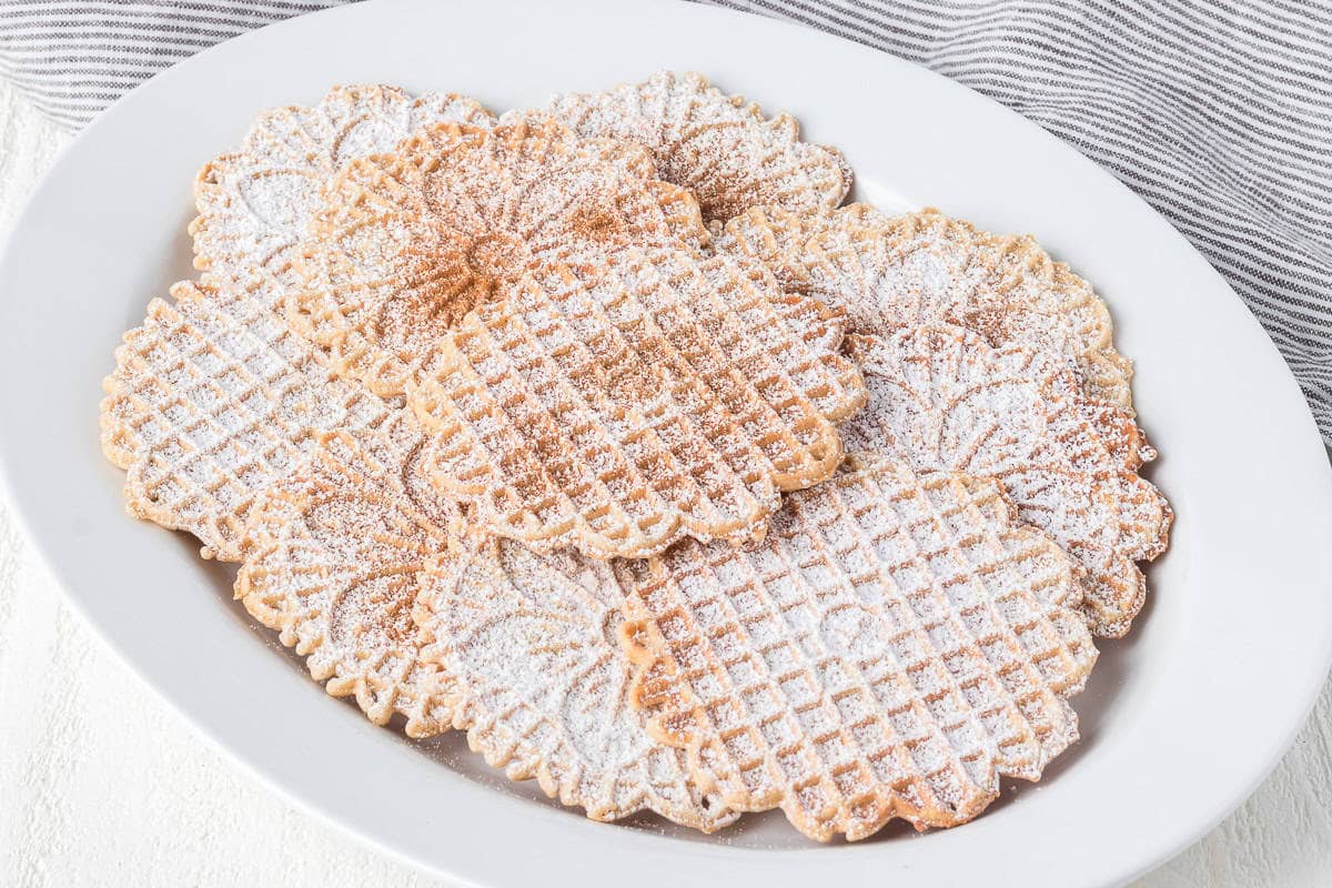 | Hello ooseims, Chai Pizzelles add a twist to the classic Italian cookie by using the warm spices you'd find in a steaming mug of chai. This fragrant cookie is easy to make with a pizzelle iron and makes a statement at any event! Whip up a batch today! Have you ever had pizzelles? Pizzelles are traditional Italian waffle cookies made by dropping batter into a hot pizzelle iron and baking it. There are all sorts of intricate designs, and you can customize the cookie batter with any flavors you like!