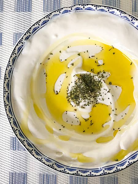 EVOO, yogurt, nuts (pistachios, walnuts, almonds, pine nuts) and seeds (sesame—samsum!).