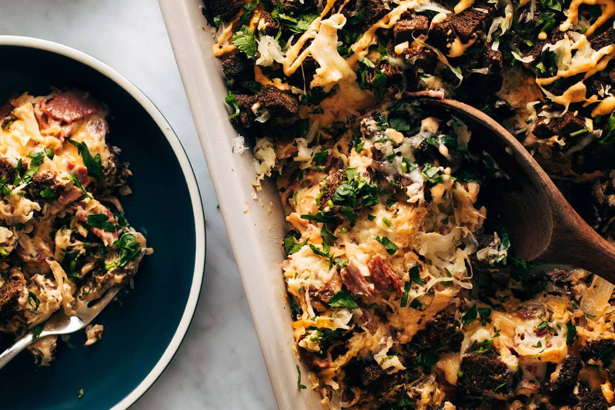 | Hi reader, It's finally February! And it's still winter, but this always feels like one tiny step towards spring. The recipes this week are ones that just make me happy - they're bright and colorful, full of texture and crunch, and some even deliver a little nostalgia that just brings me joy. I hope they do for you, too! #1: Cauliflower Black Bean Tostadas #2: Roasted Peanut Kale Crunch Salad #3: Deb's Ranch Crackers #4: Bang Bang Salmon #5: Dulce De Leche Tiramisu #6: Blueberry Matcha Latte #7: Reuben Casserole Have a great week! - Lindsay | |