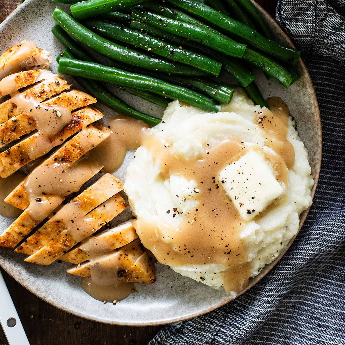 Reader Emily says: "Both my fiancรฉ and I were SO SURPRISED at how delicious it was? I used fresh cauliflower and it was great. I am not a Cauliflower girl AT ALL so I was skeptical. I honestly liked this more than just standard mashed potatoes.!" Serve Healthier Mashed Potatoes With: