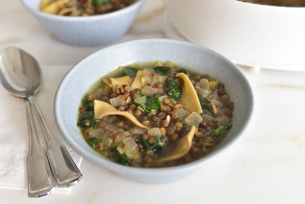 ~ Fragrant and Flavorful ~ This lentil soup, or rushta, is a nostalgic recipe. The soup is humble, hearty, satisfying. It's high in protein and fiber. And there's a versatility to it: use any greens you like, or none. Keep the pasta or go gluten-free. With so much flavor from onions, garlic, and spices, this soup is a fast favorite.