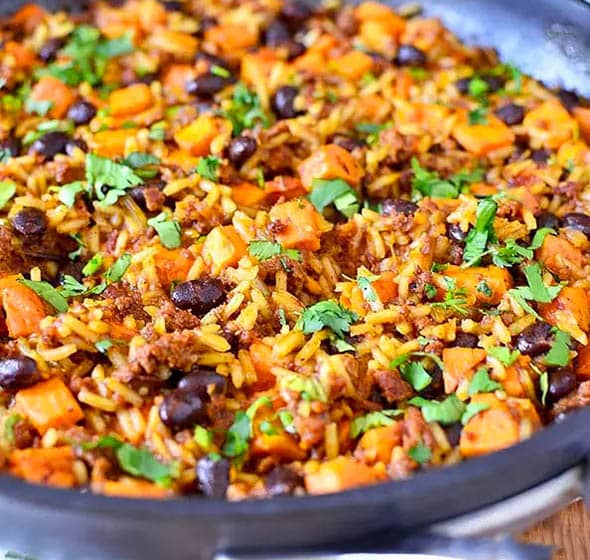 #2 Chorizo, Sweet Potato and Black Bean Rice Skillet