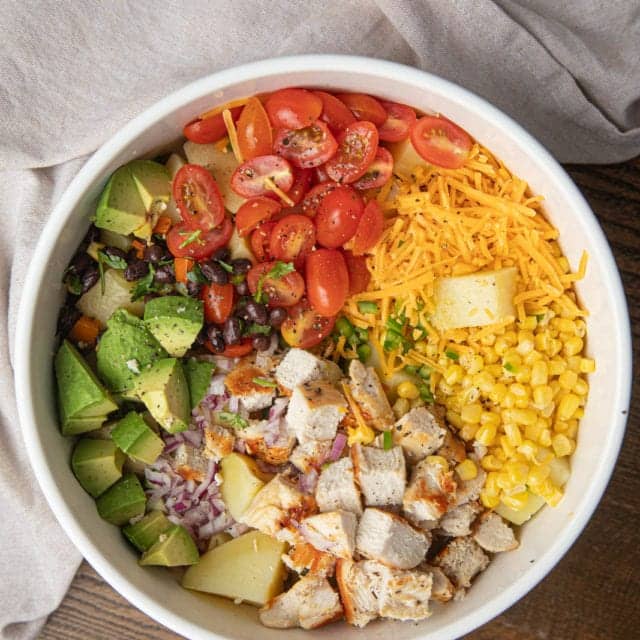 Delicious potato salad with the addition of flavorful ingredients like avocados, black beans, and corn for an elevated version of your favorite side dish.