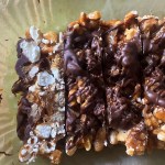 These bars evolved , as some of the best recipes do, from using up what was hanging about, and have involved into something of a legendary snack option. There is nothing mundane about these bars, they full of contrasting salty and sweet flavours, along with a myriad of textures to excite the palate.