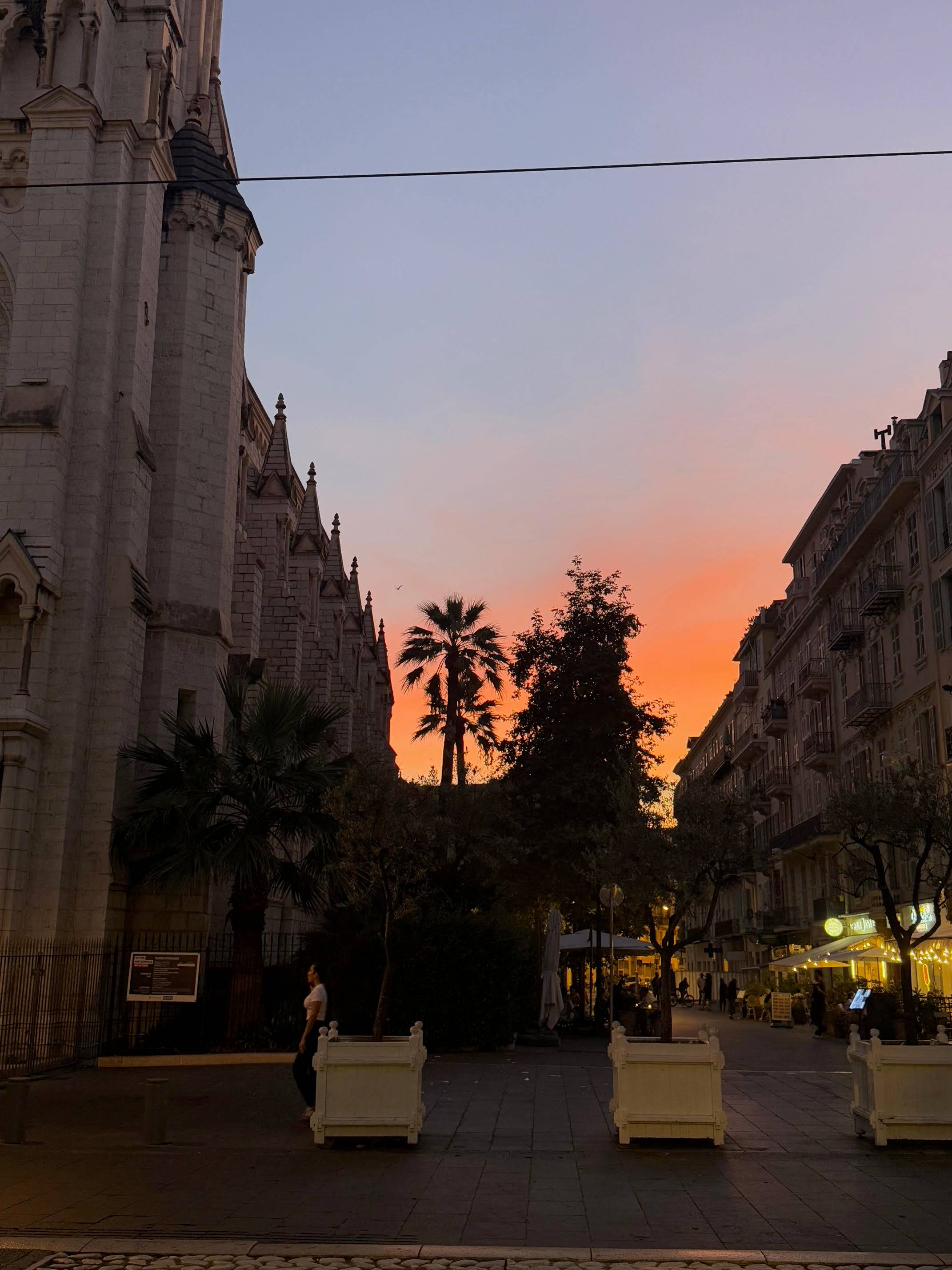 Sunset in Nice, France. I've never been to the French Riviera and couldn't believe this was France. The temperature was in the low 80s during the day and perfect.
