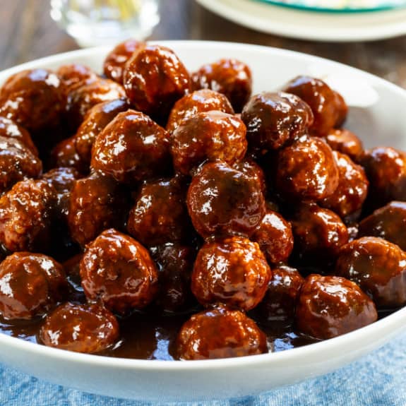 Only 4 ingredients needed for this retro slow cooker favorite. These Spicy Grape Meatballs make such an easy appetizer.