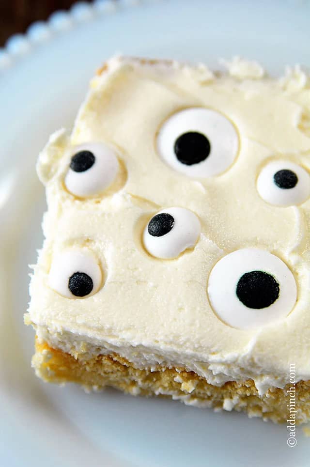 4. Eyeball Cookie CakeThis Eyeball Cookie Cake is a fun and not-so-scary way to bring a little bit of Halloween cheer to any event. Kids (and adults!) will love the cute candy eyes on top. Using store-bought cookie dough makes it a breeze. Prep Time: 10 minutes Cook Time: 15 minutes Total Time: 25 minutes