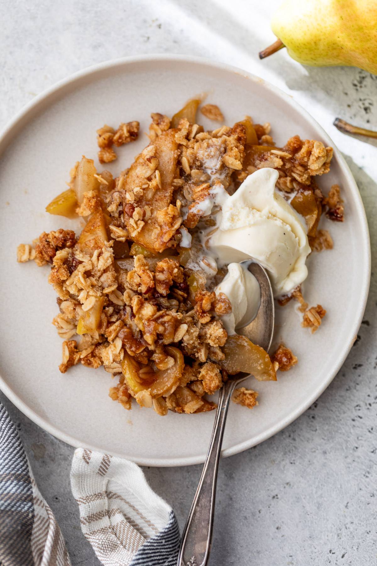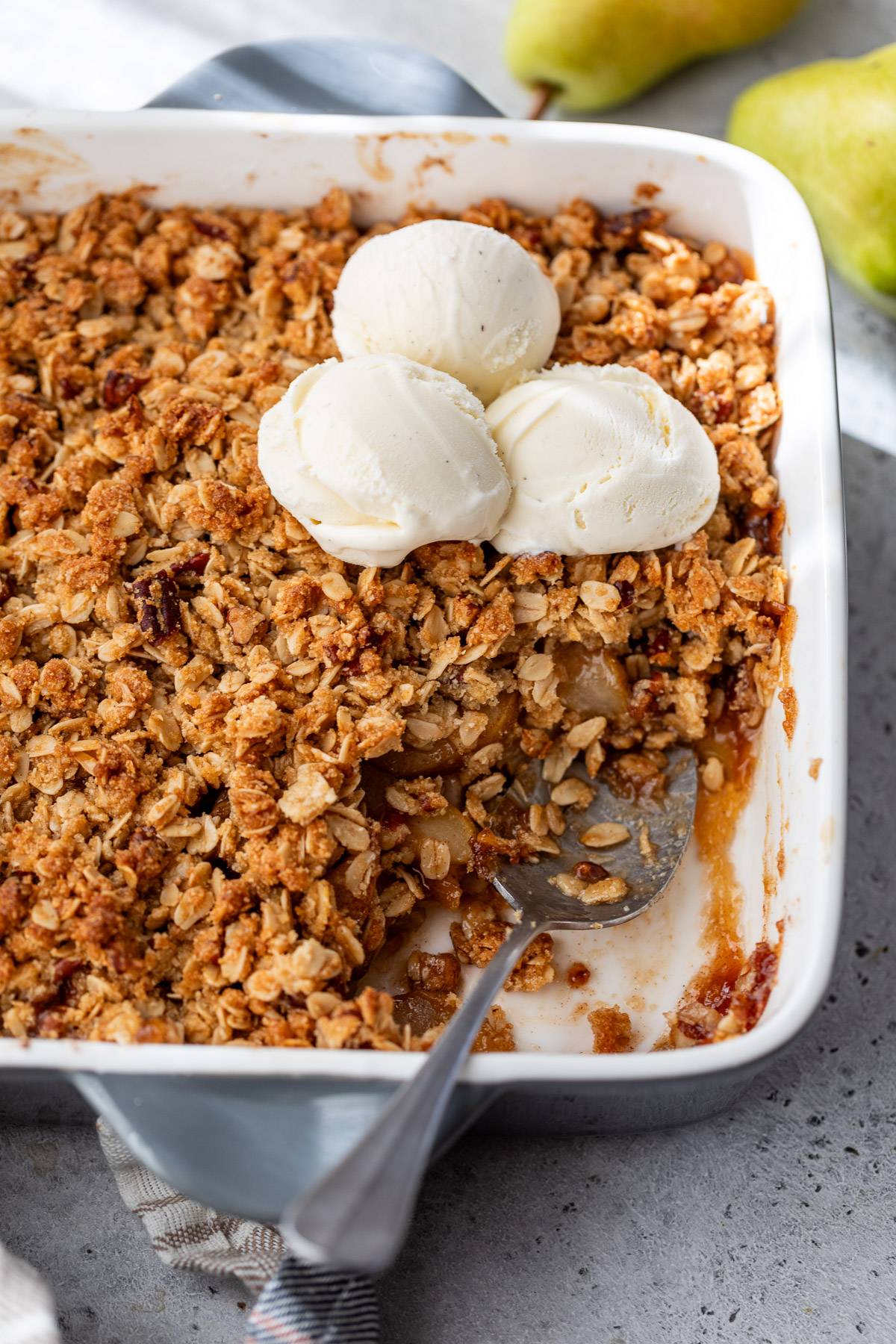 | What's an email-only recipe, you ask? It's an exclusive recipe that I'm only sharing with those who are on my email list, aka YOU! This recipe won't be on the blog, and instead will live here in this email. I'll be sending out email-only recipes at the beginning of every month. I wanted to share this Pear Crisp recipe with you. Pears are often neglected, but I personally love them in dessert form! Full recipe below -- enjoy! Pear Crisp Prep time: 15 minutes Cook time: 1 hour Serves: 8 Ingredients: 1/3 cup water 1/4 cup brown sugar 2 tbsp cornstarch 1 tsp cinnamon For the topping: 1 cup rolled oats 1/2 cup almond flour 1/2 cup brown sugar 1/4 cup pecans, chopped 1/4 tsp cinnamon 1/4 tsp salt 6 tbsp butter, melted Vanilla ice cream for serving, optional (but not really) Directions: